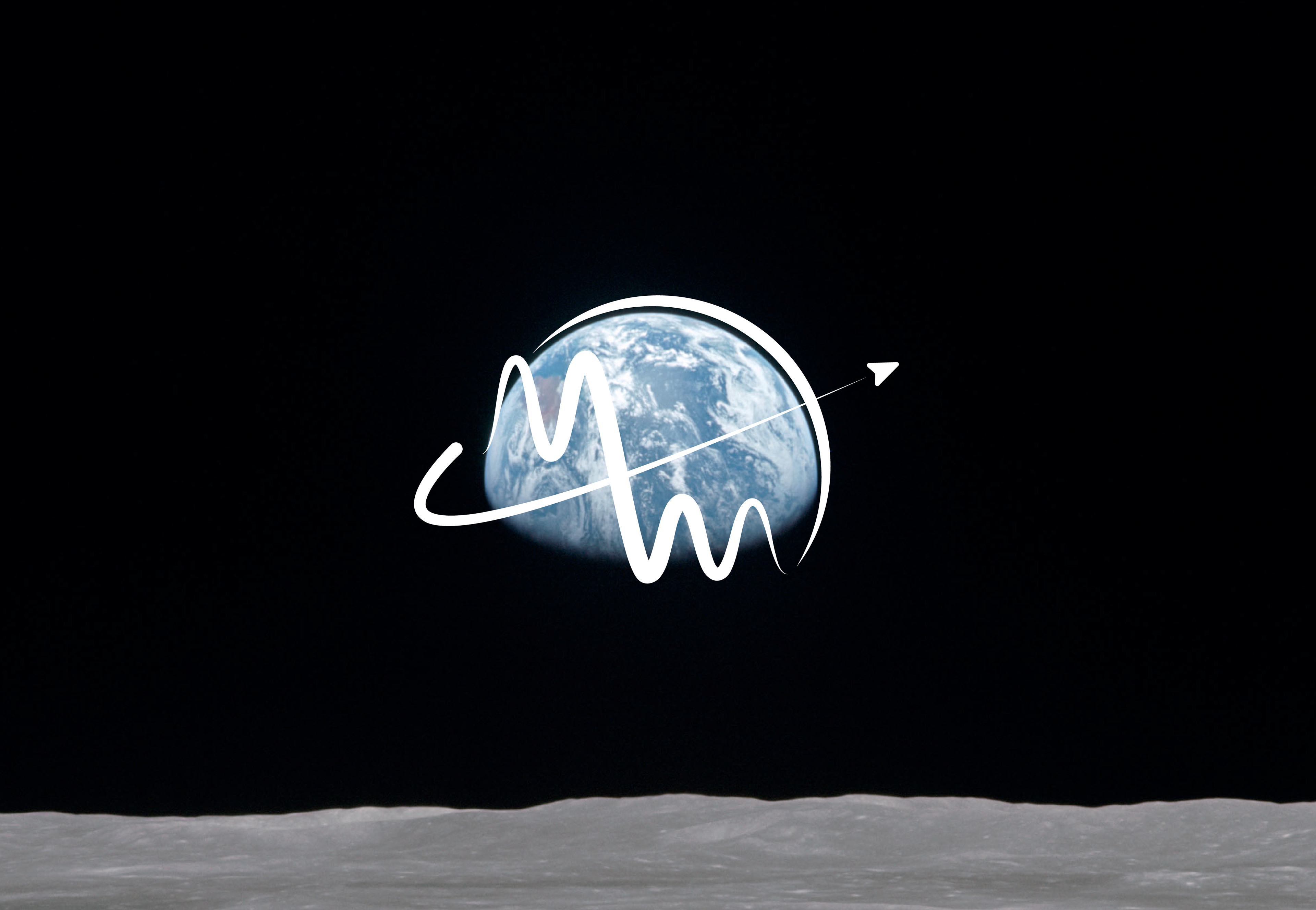 I mapped out the elements that directly related to the company's mission and vision: "We engineer signals that can’t be ignored." Mapping out the "M's" as an element of amplitude from an oscillation graph worked well for the name "Modulate Media". We had a trajectory path to display around Earth and our rocket ship was a computer cursor icon that represented the tech industry and our technical capabilities through design methods. The final icon also evoked a Greek mythology-like aesthetic that is only enhanced when used as a one-color icon, as seen in the Earthrise photo lower on this page.